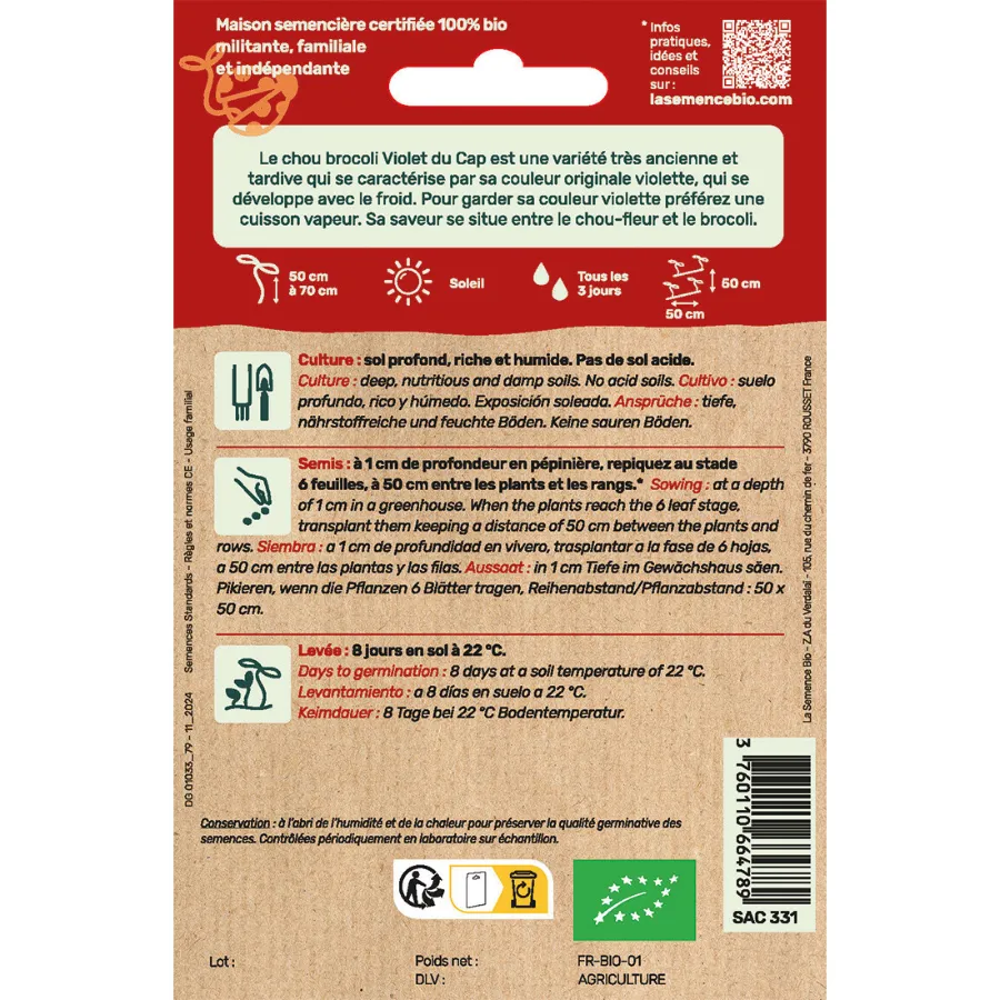 Graines biologiques Chou Brocoli Violet du Cap